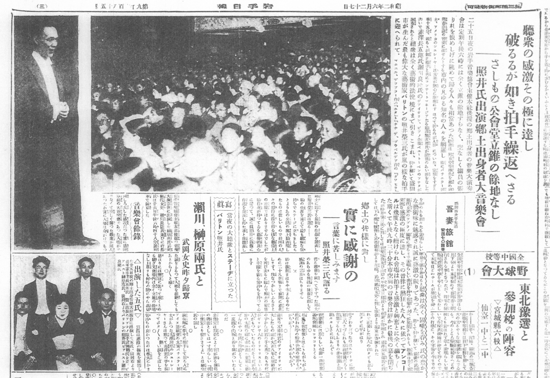 「聴衆の感激その極に達し 破るが如き拍手繰返へさる」