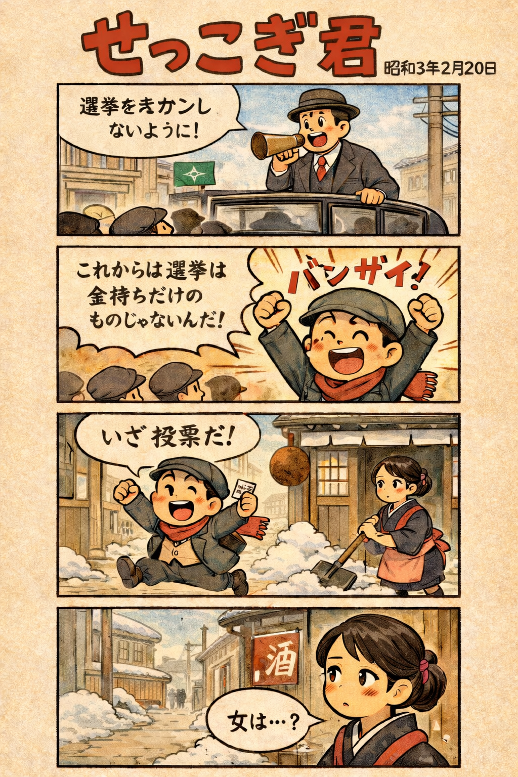 納税額に関わらず誰もが政治に参加できるようになった喜びと、それを義務として全うさせようとする行政側の強い意志が混ざり合った、昭和初期の息遣いを感じさせる貴重な記録と言えます。現代の私たちが当たり前に手にしている一票が、当時はこれほどまでに重く、そして熱く迎え入れられたものであることを、この古い紙面は静かに、しかし力強く物語っています。