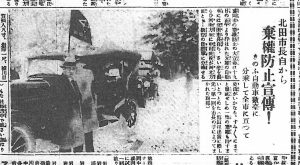 記事には、雪の残る街路を自動車で駆け巡り、一票の重みを徹底して市民に知らしめようとする市長一行の執念とも言える念の入れようが記されています。掲載された写真からは、旗を掲げたクラシックカーの傍らに立つ市長の姿と、新しい時代の幕開けに対する並々ならぬ気概が読み取れます。