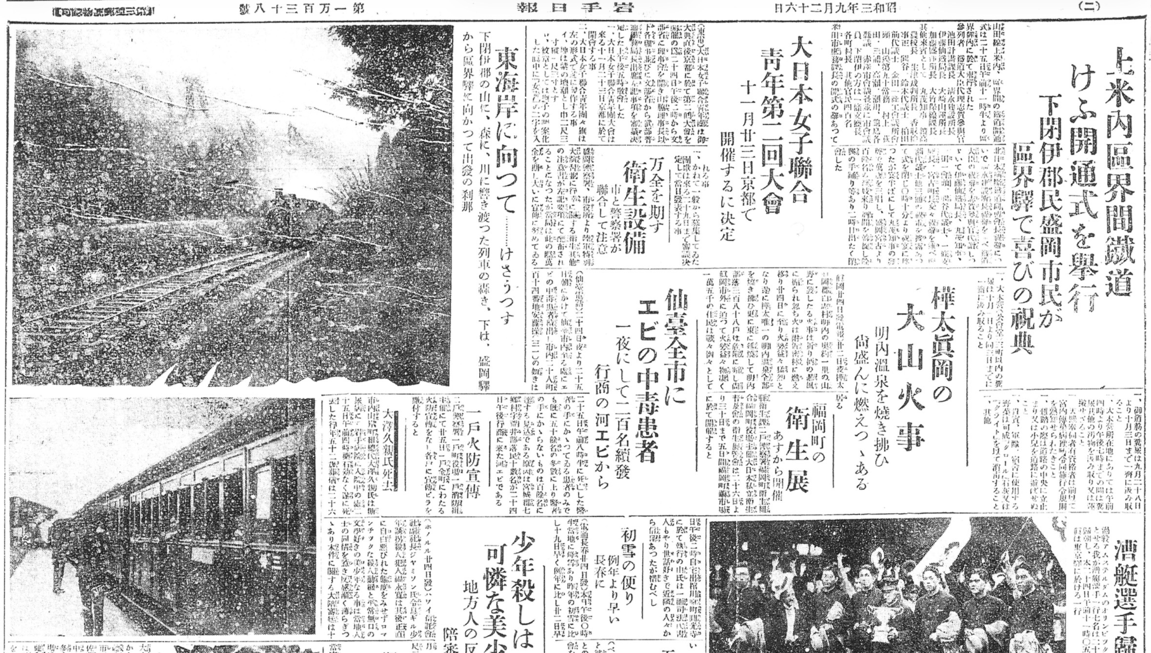 今から約100年前、昭和3年(1928年)9月26日付の「岩手日報」です。