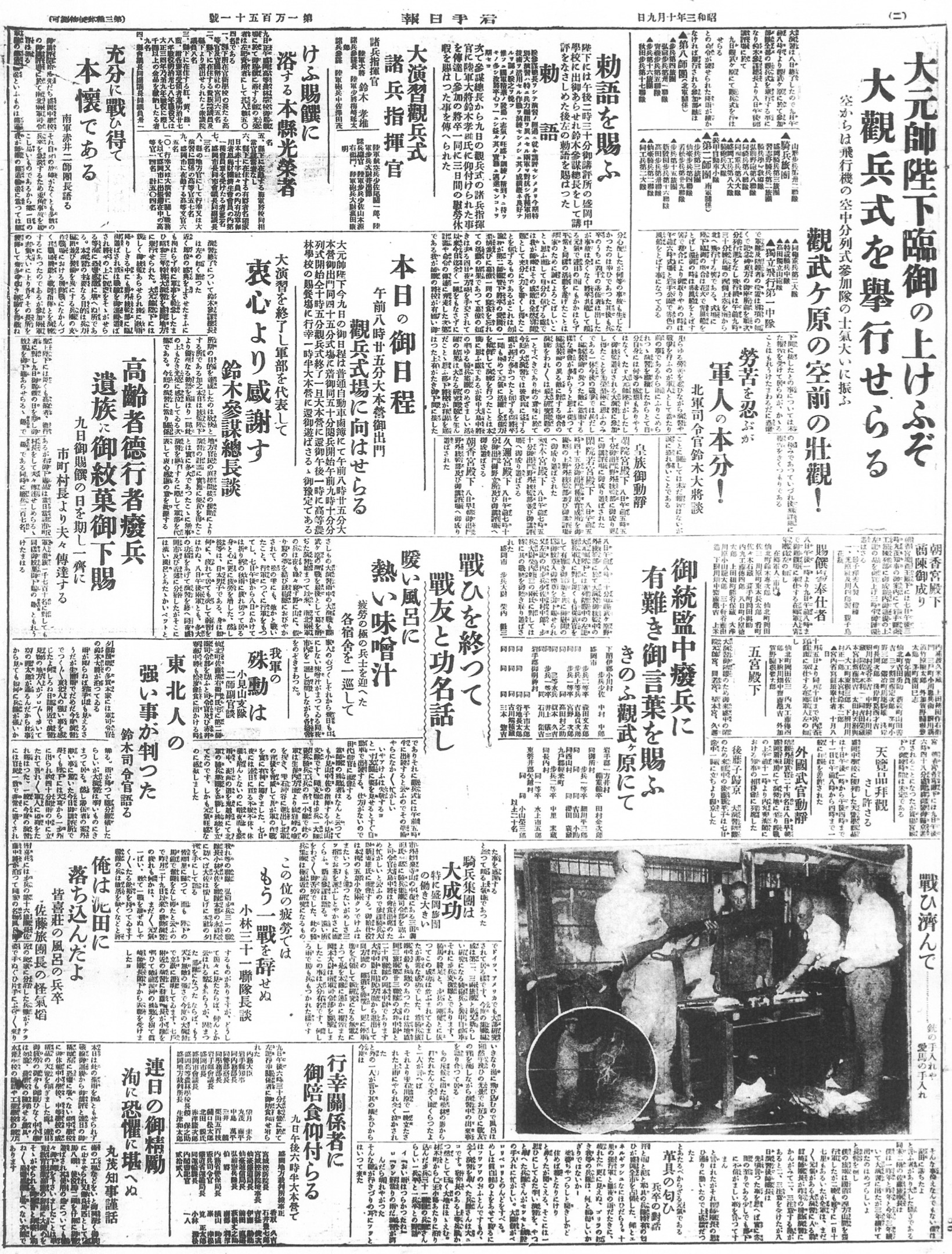 陸軍特別大演習を終わって勅語(S3.10.9岩手日報)