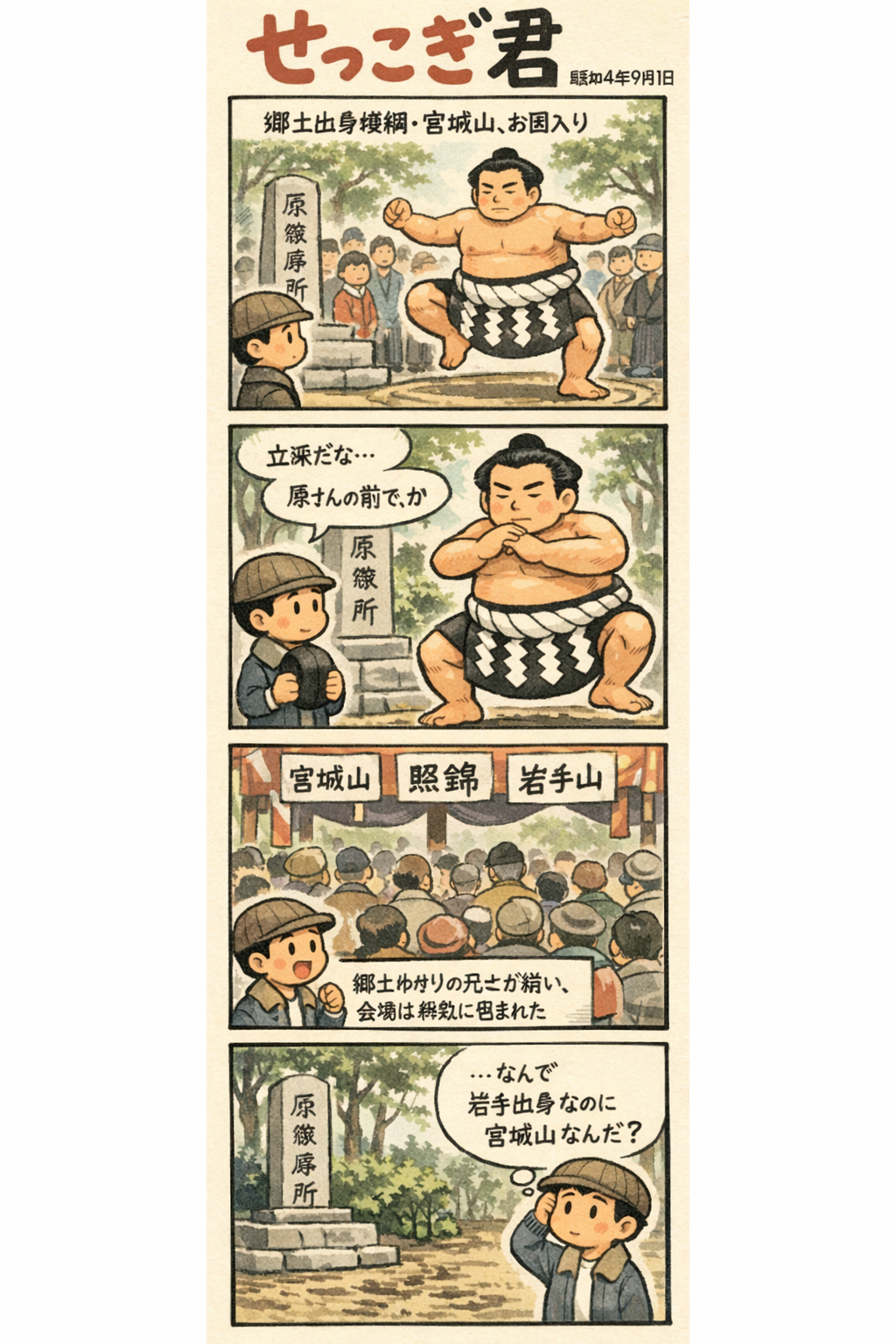 宮城山、照錦が石鳥谷で凱旋興行(S4.9.1岩手日報)