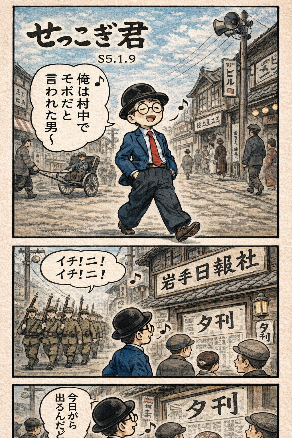 せっこぎ君(S5.1.9)岩手日報で夕刊を開始