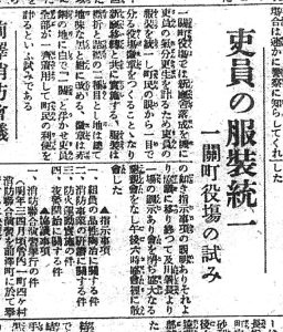 一関町役場の吏員の服装を統一(S7.11.2岩手日報)