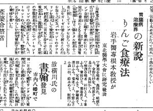 岩手医専教授が胃腸病治療に「リンゴ食療法」提唱(S8.11.1岩手日報)