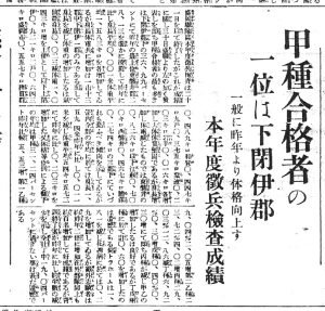 徴兵検査の甲種合格は下閉伊郡が1位(S9.9.1岩手日報)