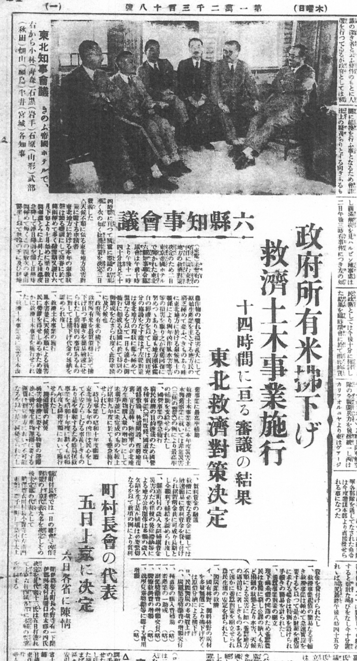 「六県知事会議 政府所有米払下げ 救済土木事業施行」