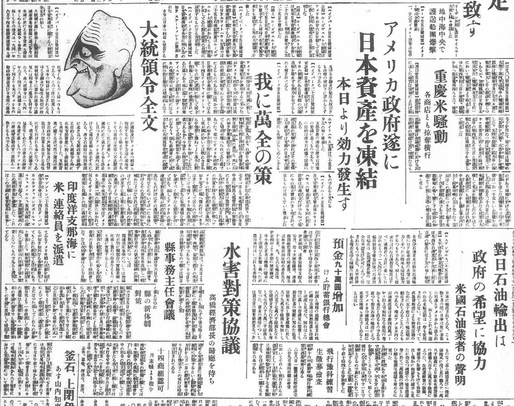 アメリカ対日資産凍結令(S16.7.27新岩手日報)