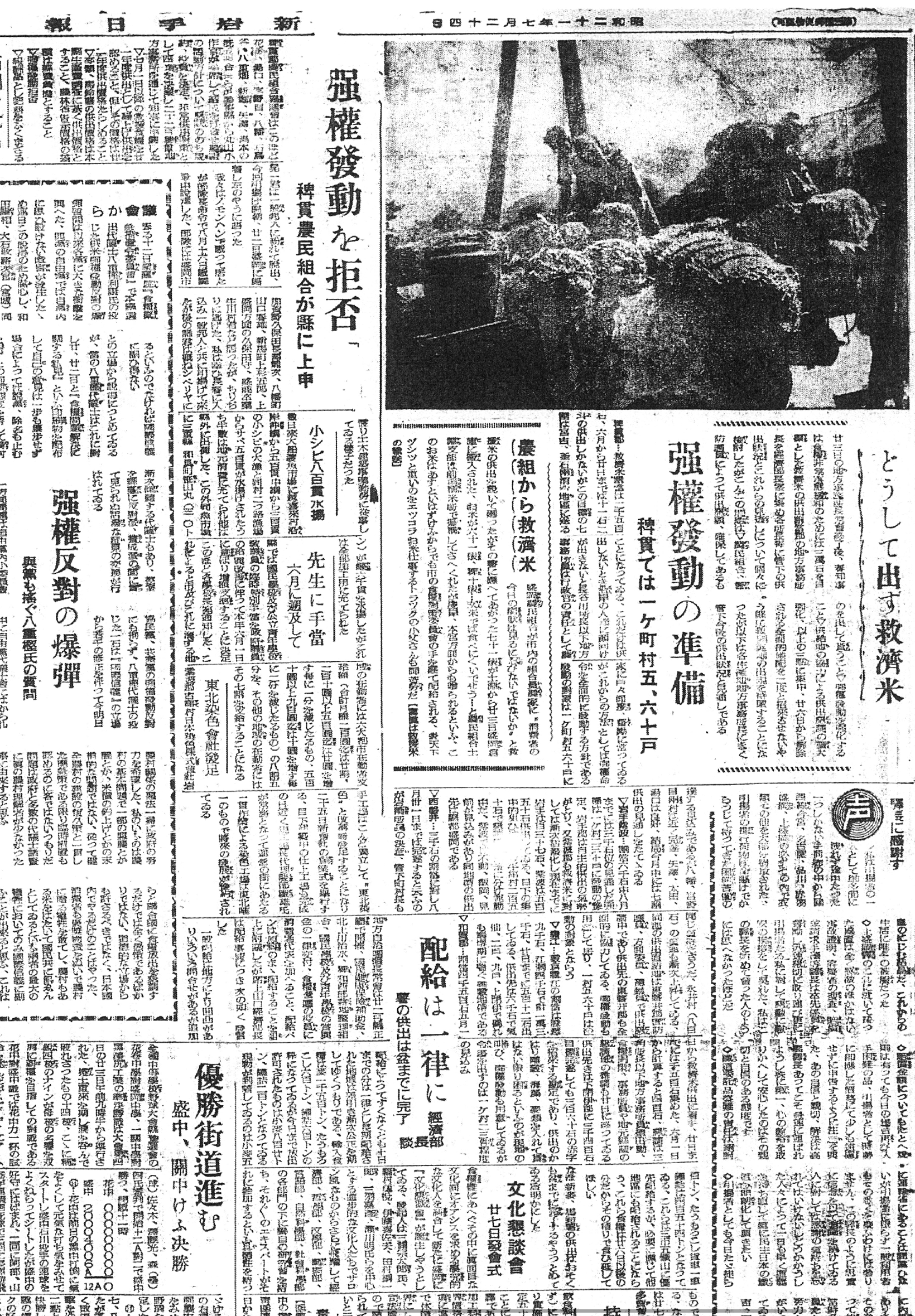 昭和21年7月24日の新岩手日報によれば、その前日にあたる7月23日、地方事務所長会議を終えた春彦一知事は、各事務所長を再度集めて米の供出状況に関する訓示を行いました。
