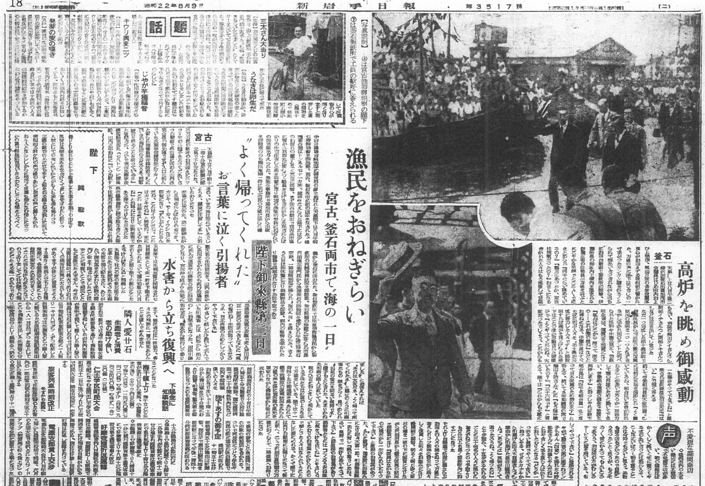 天皇陛下が釜石や宮古へ(S22.8.9新岩手日報)