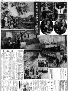 紙面には選挙カーや街頭演説、農村での集会、候補者が訴えかける姿がびっしりと並び、まるで地方議会選挙のような熱気があります。その中には、作家であり、のちに岩手県立図書館長や県立盛岡短期大学長を務める鈴木彦次郎の写真も掲載されており、文化人が積極的に教育行政へ関わろうとしていた当時の空気感がよく表れています。