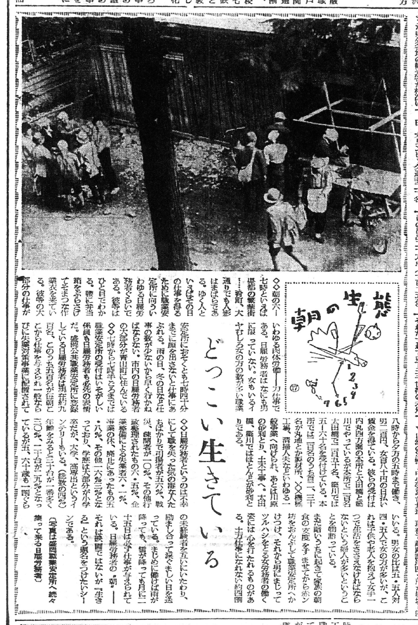 昭和27年10月4日付の岩手日報には、「朝の生態」というシリーズ記事が掲載されている。