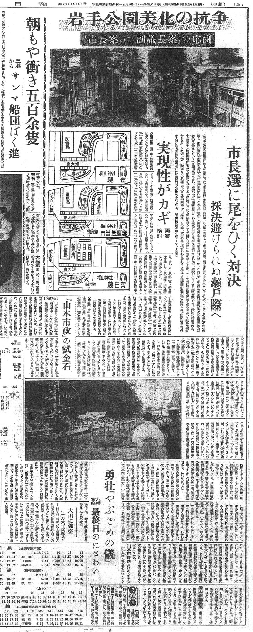こうした都市計画をめぐる対立は、単なる技術論や財政論にとどまらなかった。記事は、この問題が、革新派の山本市長と、保守派勢力との抗争という政治的側面を持っていたことも示唆している。岩手公園の美化と近代化をどう位置づけるのか、そして戦後の弱者とも言える引揚者の生活をどう扱うのか――その判断は、都市の将来像と政治姿勢そのものを映すものだった。