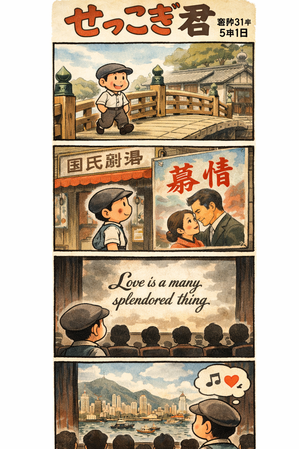 原題は「Love Is a Many-Splendored Thing」。盛岡で洋画といえば紺屋町の「国劇」だった。現在のライオンズマンションのところにあったらしい。