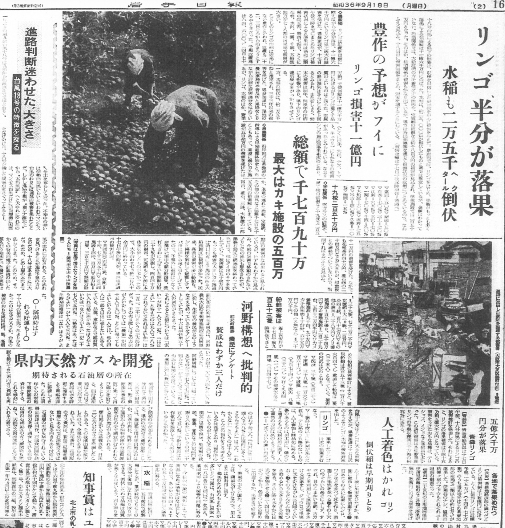- 🍎 リンゴ被害: 全体の約半分が落果。損害額は当時の金額で11億円。