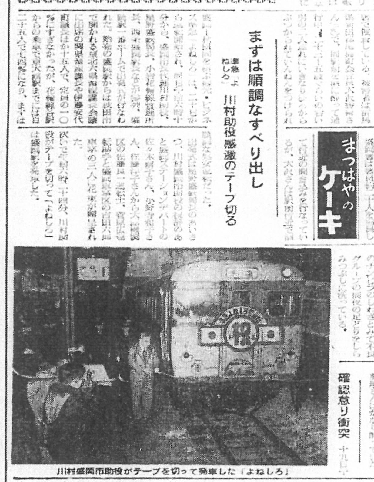準急「よねしろ」運行開始(S37.2.20岩手日報)