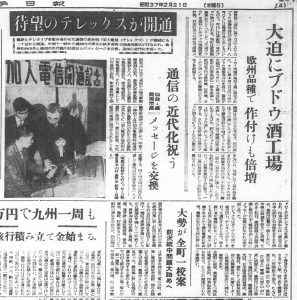一面を飾るのは「待望のテレックスが開通」という大きな見出し。電話とタイプライターを組み合わせ、文字情報を即座に伝達できる「加入電信(テレックス)」が盛岡にも導入されたのです。