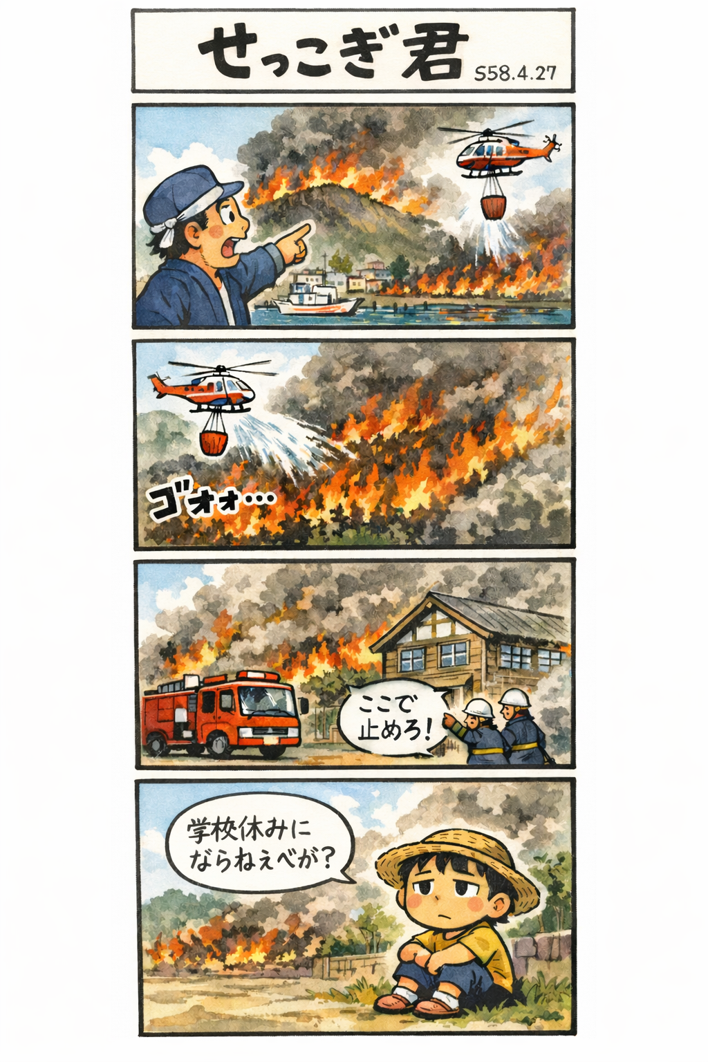 作者の実体験。木造校舎だった小学校も山側で一部焼けたはず。