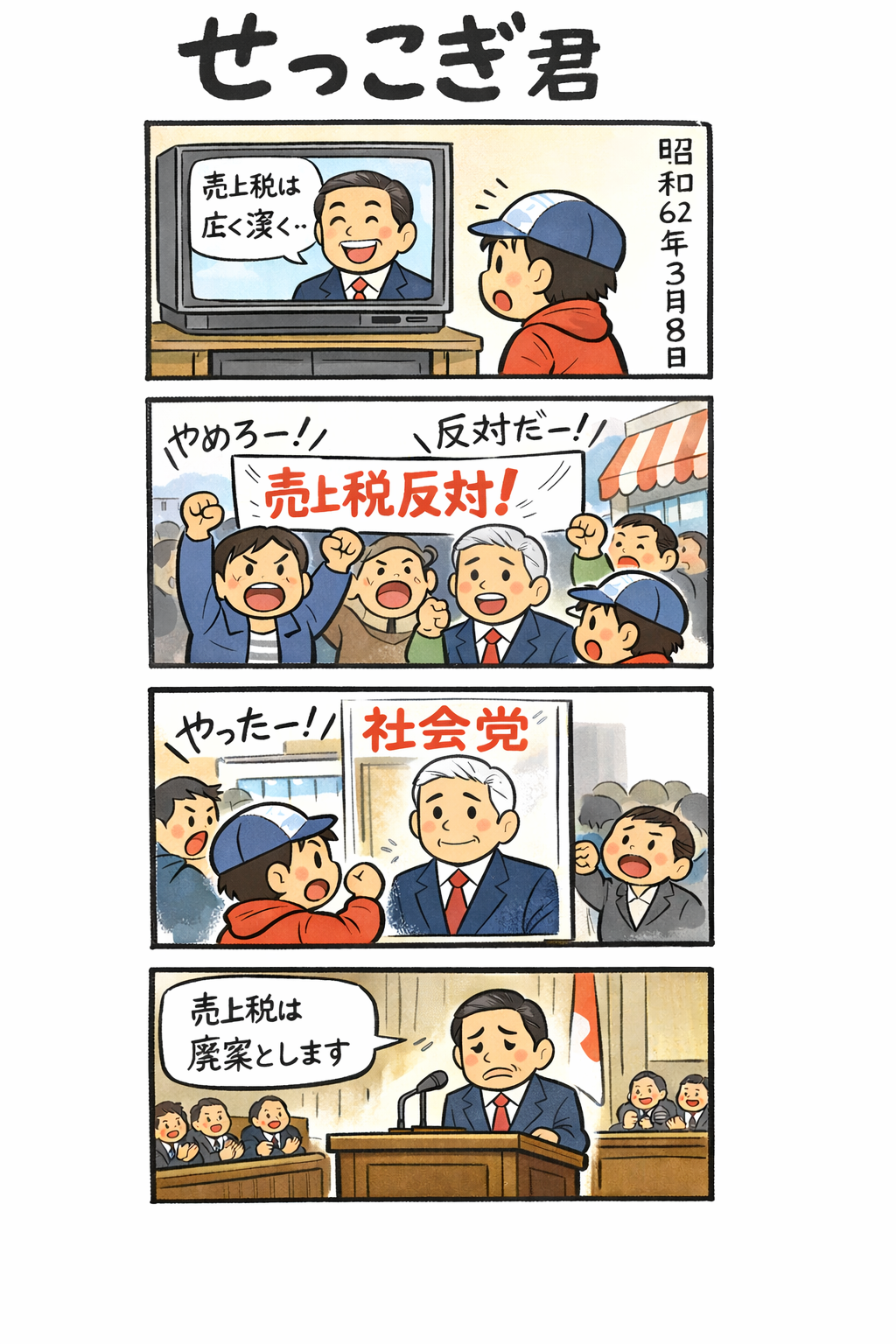 岩動道行(自)死去に伴う補欠選挙。自民党は弔い合戦で岩動夫人を擁立したが、売上税反対を掲げた小川仁一(社)が大差で当選。この当時は悪い政策は選挙で意思を示せるだけの力があった。